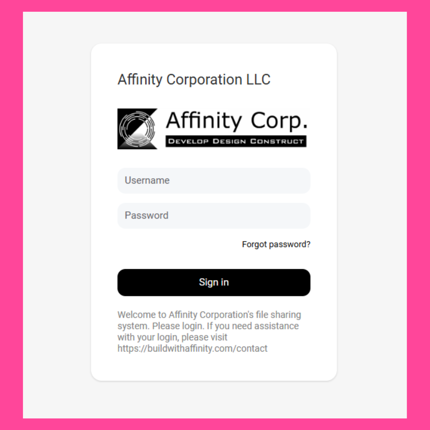 Affinity Corp, LLC, a construction design and management company, came to Webspinups seeking a reliable digital partner after frustrations with their previous host and website setup. Webspinups rebuilt their website, reconfigured email systems, and developed a secure private file-sharing system, and continued ongoing support for future scalability.