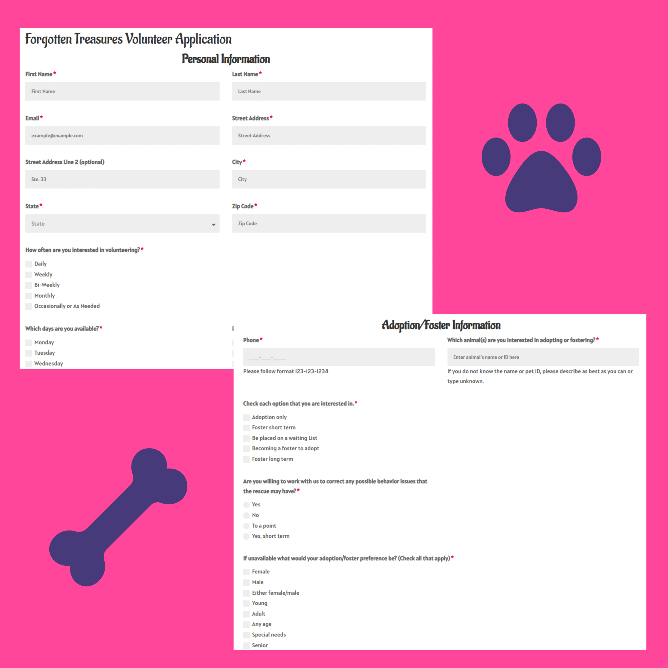 Highly customized foster, adoption, and volunteer forms with conditional logic