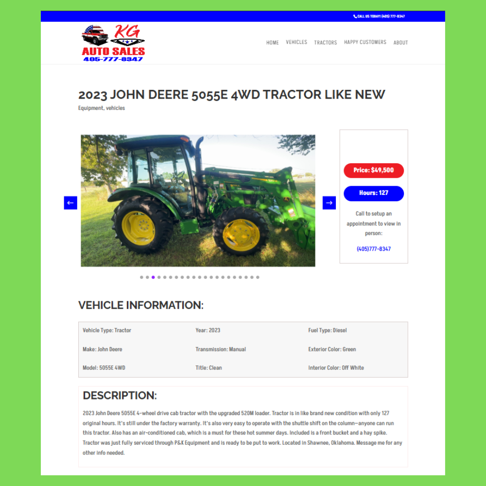Dedicated, searchable pages for both vehicle inventory and tractor inventory